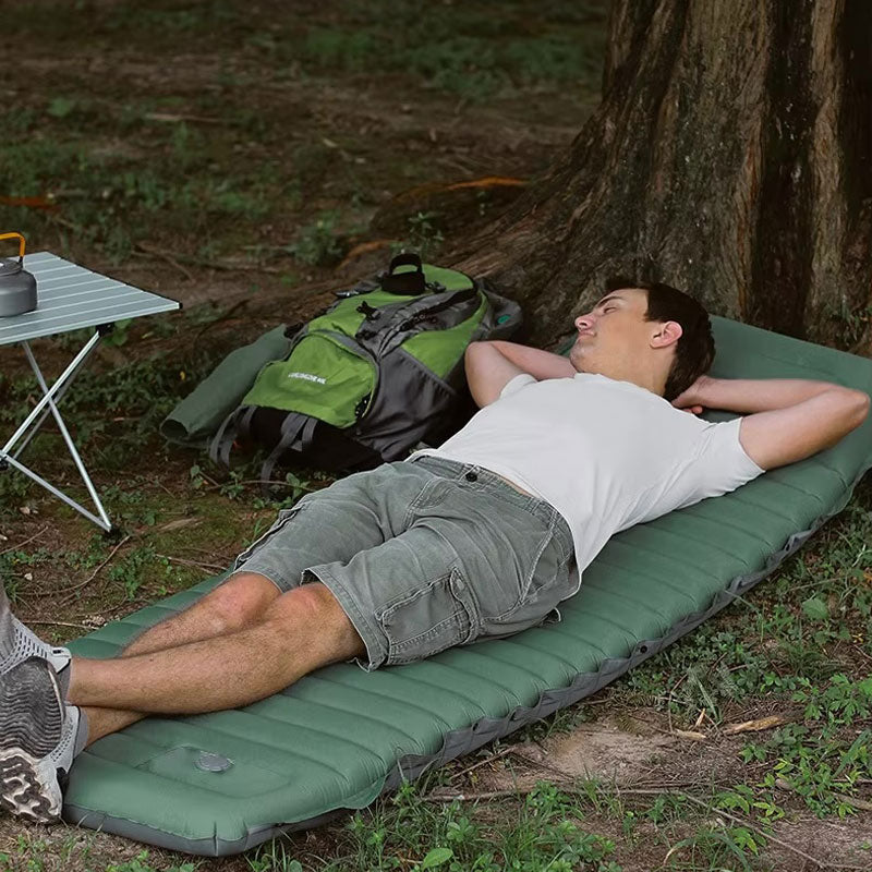Letvægts luftmadras – Grøn/Grå med integreret fodpumpe