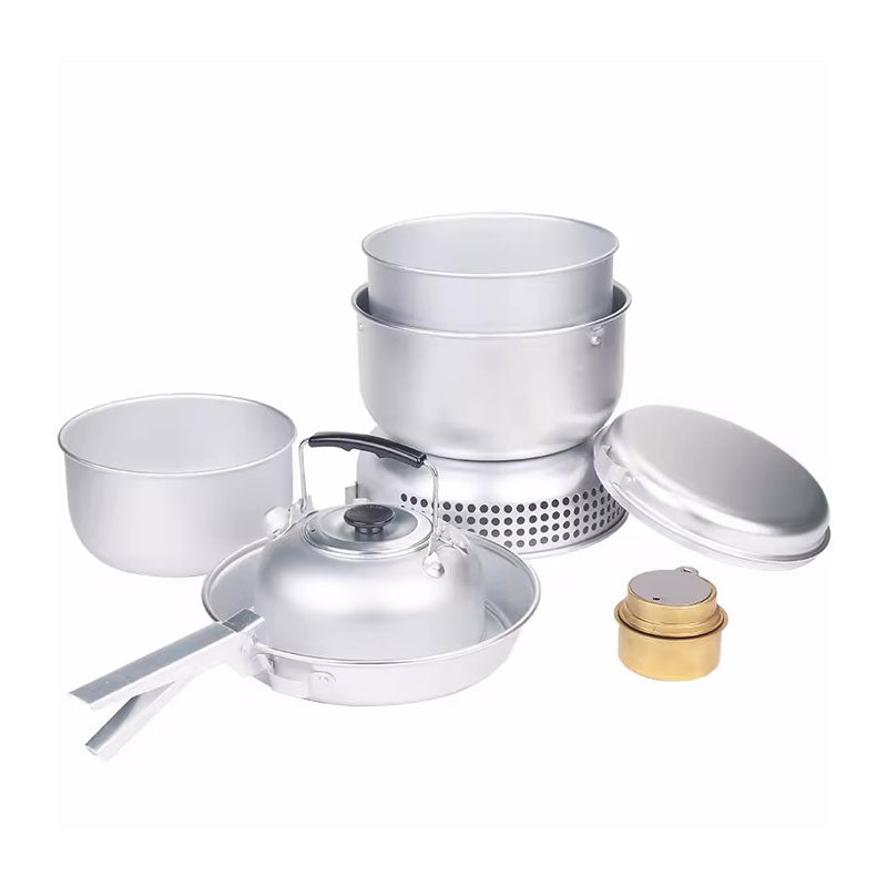 Stormkøkken i aluminium – 10 dele – Spritbrænder